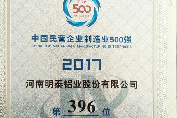 2022年7月明泰鋁業(yè)首次入選《財富》中國500強
